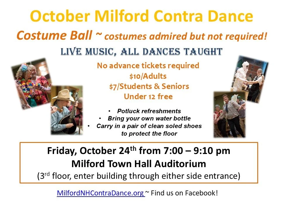 Slide 1 Slide 1 (current slide) Slide 2 Slide 2 (current slide) Slide 3 Slide 3 (current slide) Visit us on Facebook! October Milford, NH Contra Dance Flyer